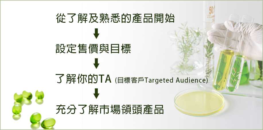 市場上同一類型(或是功效)的產品,通常會有一支至兩支的領頭產品,市場占有率及知名度最高的產品。例如、智慧型手機的領頭品牌就是蘋果及安卓。保健食品也是如此。在進行保健代工委託之前,我們會建議客戶去充份了解預計推廣的保健食品類別裡,領頭產品是哪一支、價位、目標客群、銷售通路等等。因為這些都與所有同類型的產品很有關聯性。也會深深影響到客戶往後的銷售計畫。