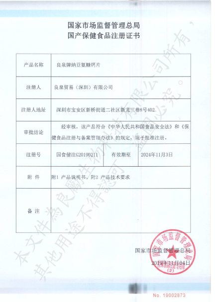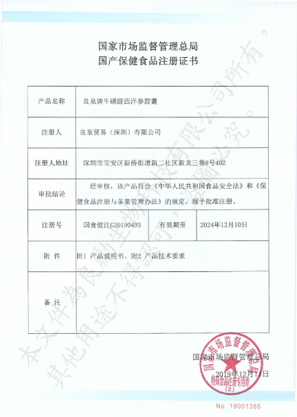 具備"中華人民共和國食品安全法" 和 "保健食品註冊與備案管理辦法" 批准註冊。